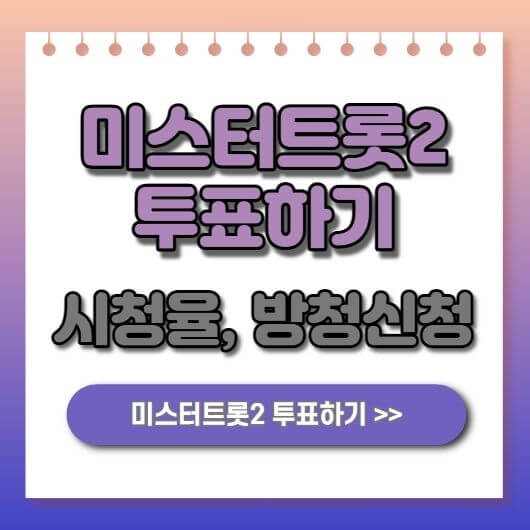 미스터트롯2 투표하기 방법 및 시청률, 재방송 정보, 방청 신청방법에 대해 알아보겠습니다. 12월 22일 미스터트롯2가 첫 방송된 이후 엄청난 인기를 끌고 있습니다. 미스터트롯2 경연은 시청자들의 투표가 참가자들 순위에 중요한 부분을 차지하는데요. 전 국민을 대상으로 한 미스터트롯2 투표하기! 현재도 진행되고 있는 투표 방법에 대해서 알아보도록 하겠습니다.